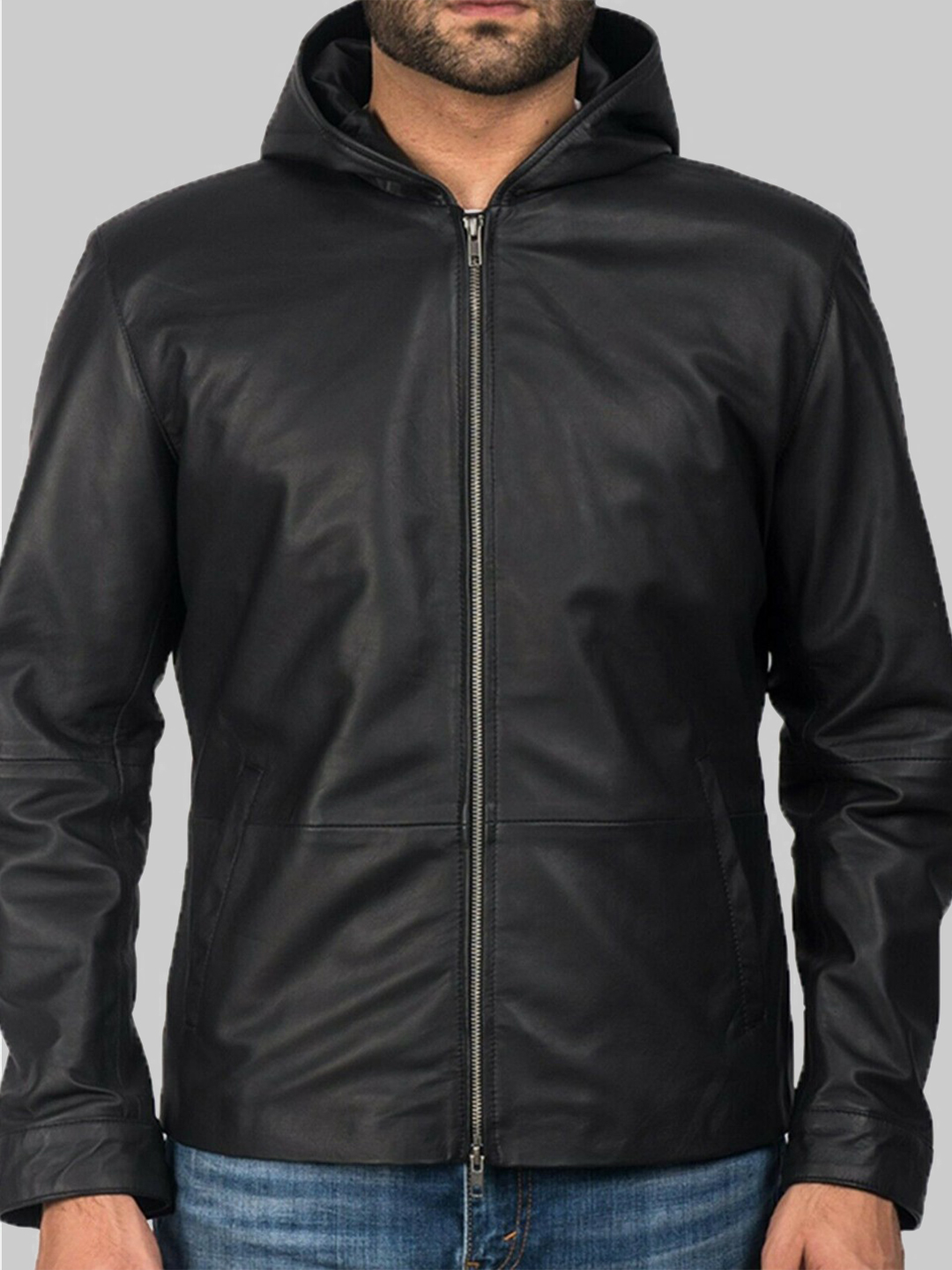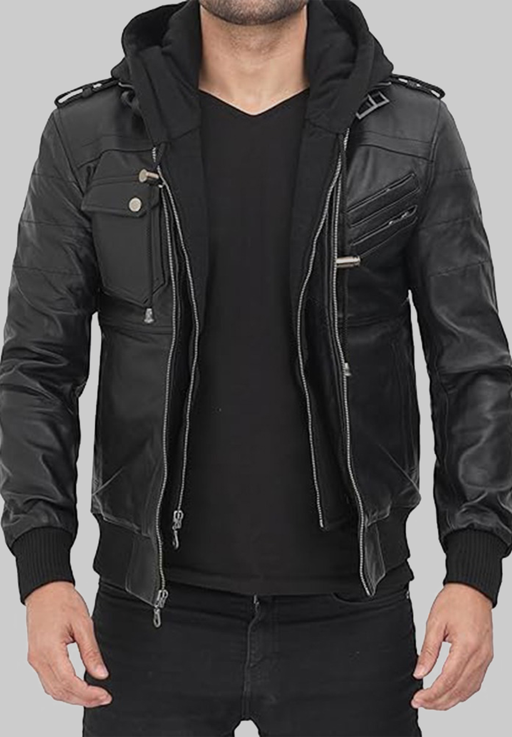 Men’s Black Genuine Leather Hooded Jacket – Rogue Emirates