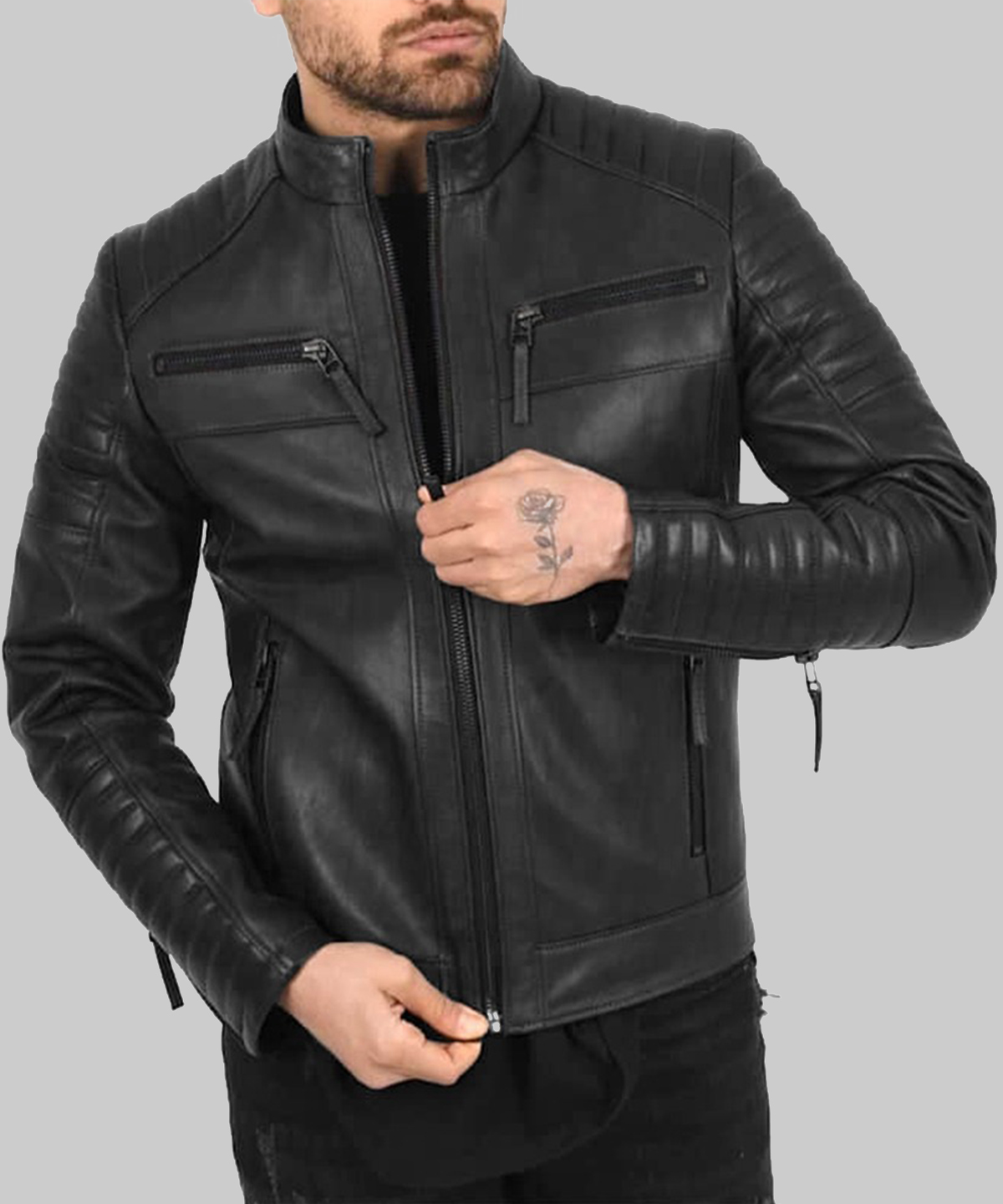 Men’s Black Quilted Leather Biker Jacket – Premium Cowhide Motorcycle